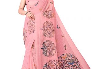 SOURBH Women’s Plain Weave Cotton Blend Saree with Blouse Piece (Peach)