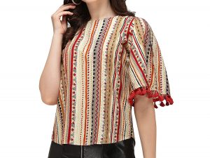DHRUVI TRENDZ Women Printed Slub Rayon Top with Half Sleeves for Office Wear, Casual Wear, Under 399 Top for Women/Girls Top