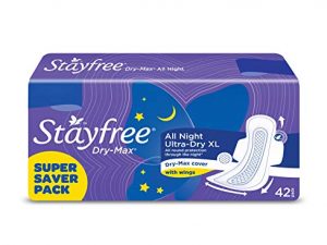 Stayfree All Night XL Dry Max Cover Sanitary Napkins – 42 Pads (Super Saver Pack)
