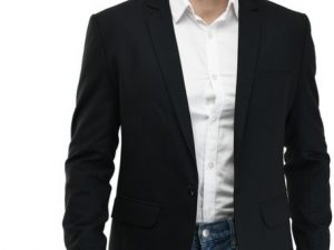 [Size 34] One Click?Solid Single Breasted Formal Men Full Sleeve Blazer??(Blue)