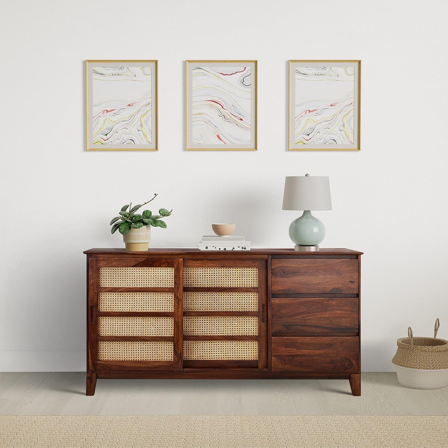 Amazon Brand – Solimo Augustene Solid Sheesham Wood Sideboard with Sliding Door with 3 Drawers