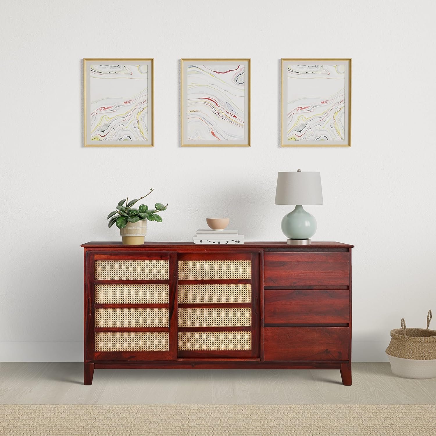 Amazon Brand – Solimo Augustene Solid Sheesham Wood Sideboard with Sliding Door with 3 Drawers