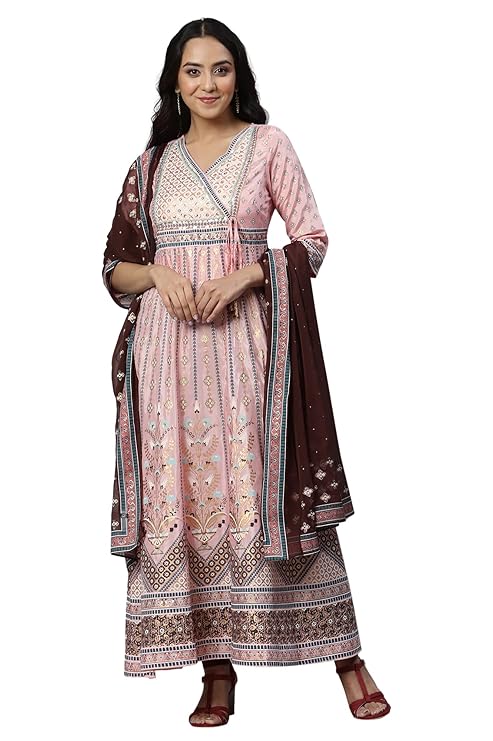 Aurelia Women’s Floral Print Silk Kurta Set with Leggings & Dupatta
