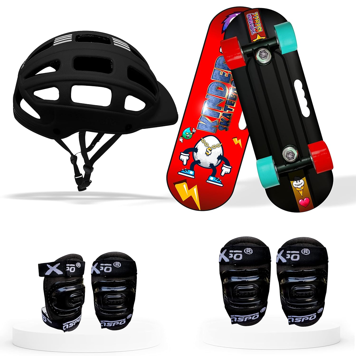 Jaspo Dragon Fire Junior Kids Fiber Skateboard Kit I Casterboard I Cruiser I (18″X 6″) Junior Board Kit 18 Inches (For Upto 7 Years Age) – Black