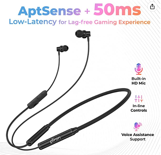 pTron Tangent Urban bluetooth neckband earphones with 60hrs playtime available now at ₹799
